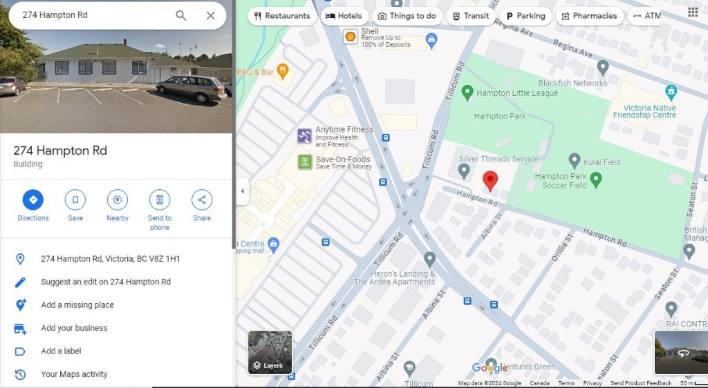 The Dojo is located at 274 Hampton Road, Victoria, BC